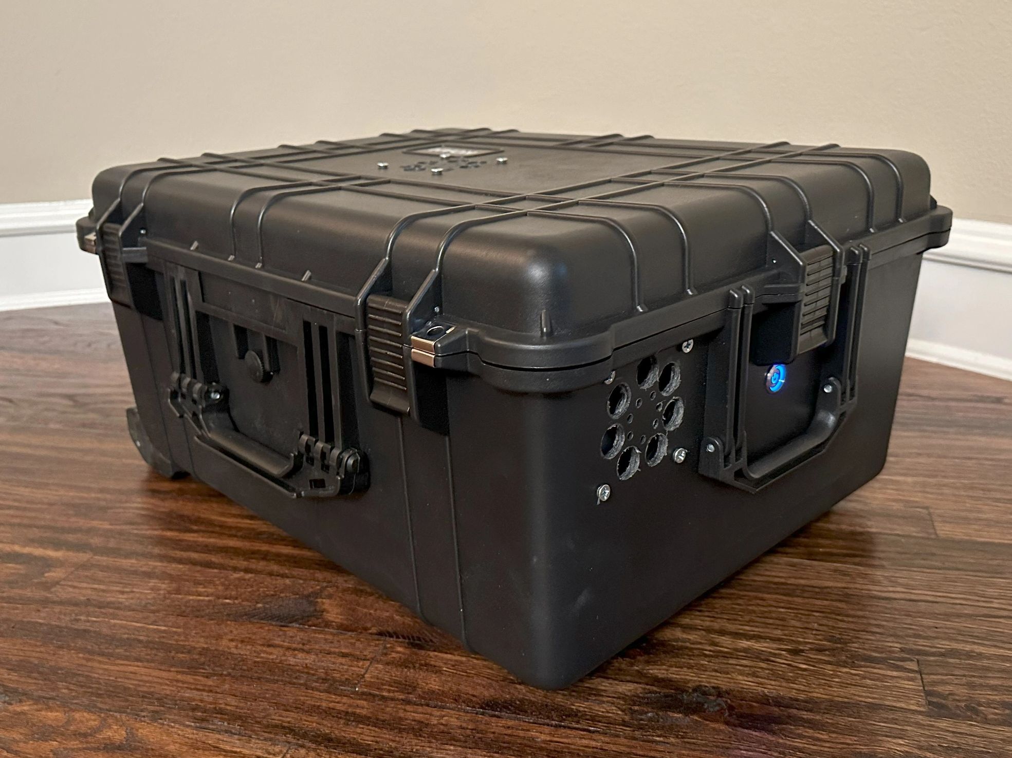 My SkateCrate protects my ice skates in shadow foam. Fans dry the skates by pushing & pulling air through bespoke plumbing. It also holds a lock and socks.